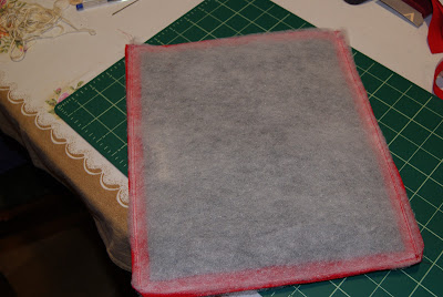 Now we can get to work on the outside of your cover. First you need to cut a rectangle out of one piece of red felt. You'll be putting the grey felt behind it as your Etch-a-Sketch screen. I wish I'd made my "screen" a little smaller but I'll give you the dimensions I used and let you make up your own minds! It's 6" x 8¾".